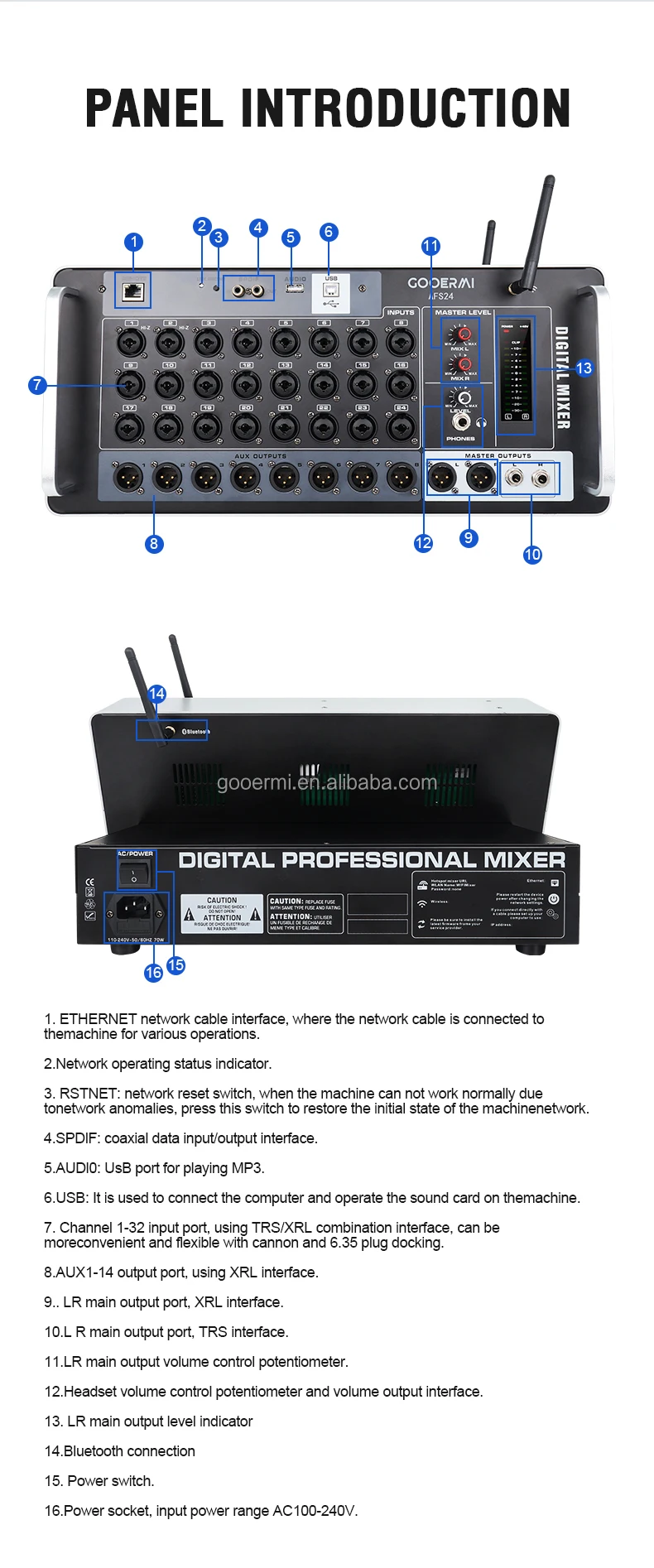 ASF24 Professional 24-Channel Digital Rack Mixer Audio Mixer DSP Mixer with WIFI Recording Console