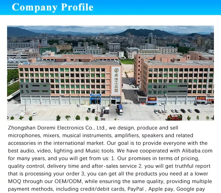 A:We are factory.We producing microphones,audio interface,sound card,microphone stand etc.